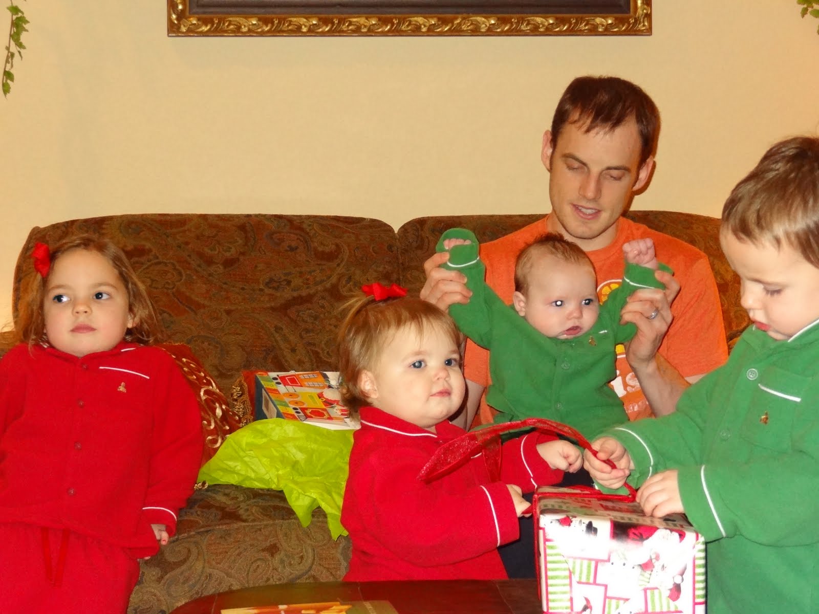 Alayna was the first up and when we brought her in our room she woke up Taylynn and Preston. It didn't take Taylynn but 4 seconds to realize it was finally Christmas morning.
